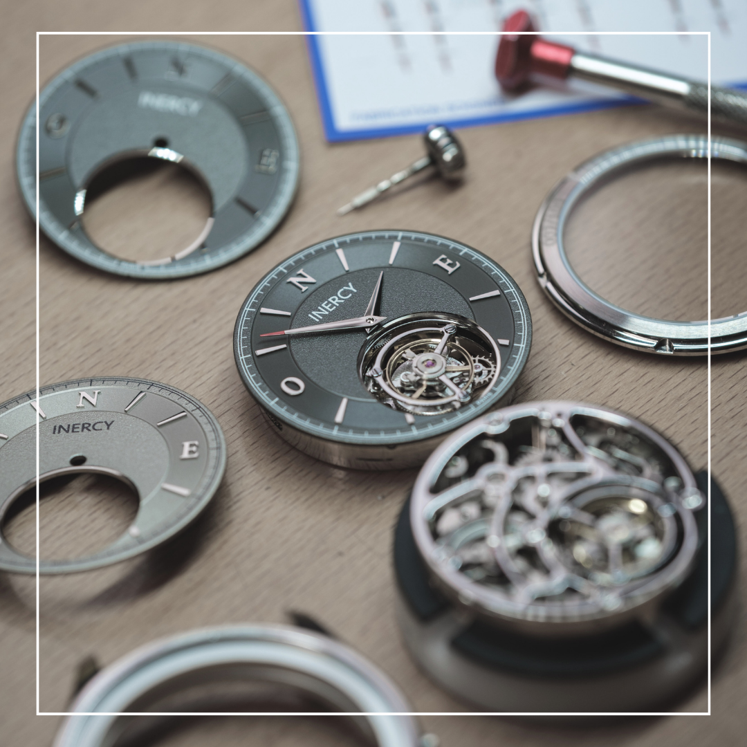 Tous les éléments d'habillage (aiguille, cadran, bracelet et écrin) sont conçus entre la France et la Suisse.